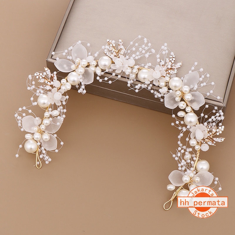 Bandana Rambut Desain Bunga Daun Gold Hias Mutiara Kristal Sumber : shopee.co.id